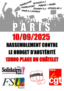 ...En voulant imposer une purge budgétaire de plus de 40 milliards d’euros, la Macronie entend condamner le monde du travail, les salarié.es du privé et du public, les privé.es d’emploi, les retraité.es, la jeunesse, à une dégradation de leurs conditions de vie et de travail d’une violence (…)