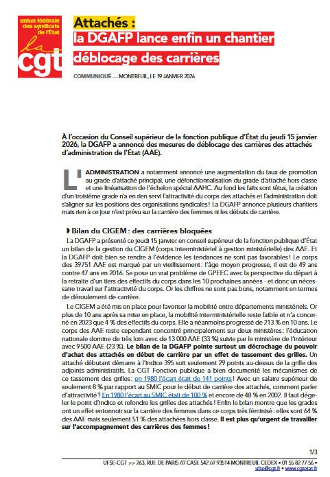 À l’occasion du Conseil supérieur de la fonction publique d’État du jeudi 15 janvier 2026, la DGAFP a annoncé des mesures de déblocage des carrières des attachés d’administration de l’État (AAE).