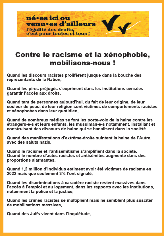 Quand tant de personnes aujourd’hui, du fait de leur origine, de leur couleur de peau, de leur religion sont victimes de comportements racistes et xénophobes dans leur quotidien,