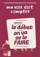 la CGT propose un cahier d’expression revendicative populaire pour "enrichir" le débat. La CGT met ce cahier d’expression revendicative populaire à la disposition de toutes celles et tous ceux qui souhaitent faire entendre leur voix. Un cahier vous permettant de porter vos revendications (…)